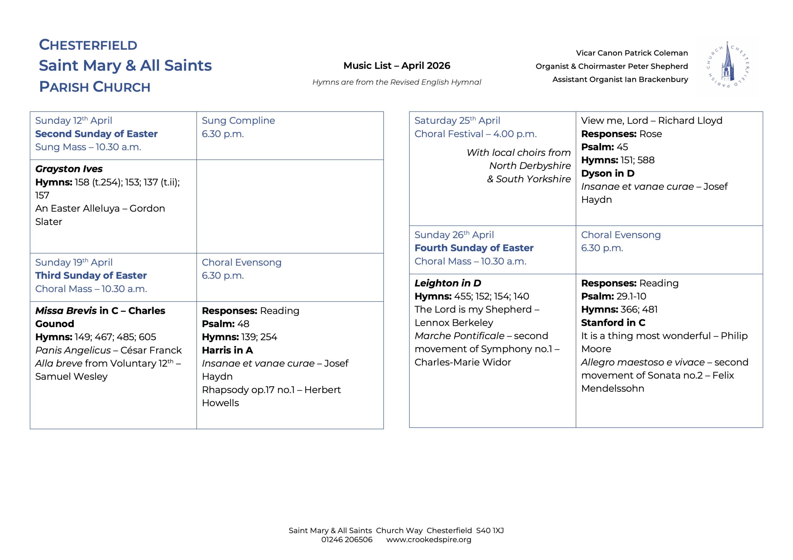 Music List – April 2026 – click on this heading or on the image to download