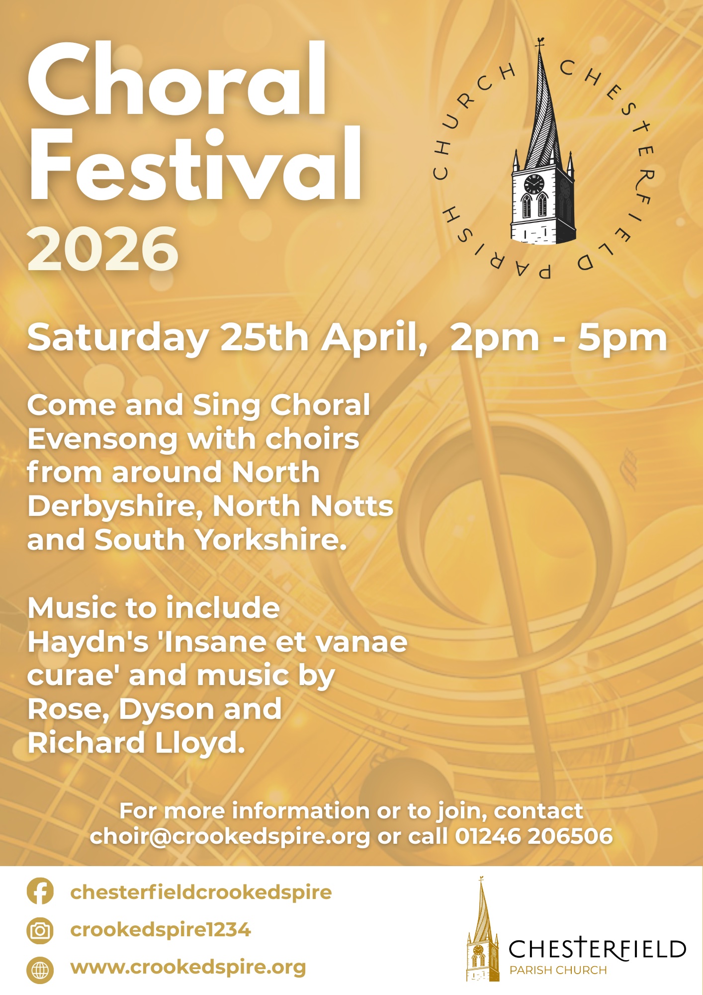 Good afternoon! This morning I was able to announce that in May I will be moving from Chesterfield Parish Church to a new role at Guildford Cathedral. As I will be 68 this year, I decided last autumn that I no longer have the capacity to manage my role in Chesterfield...